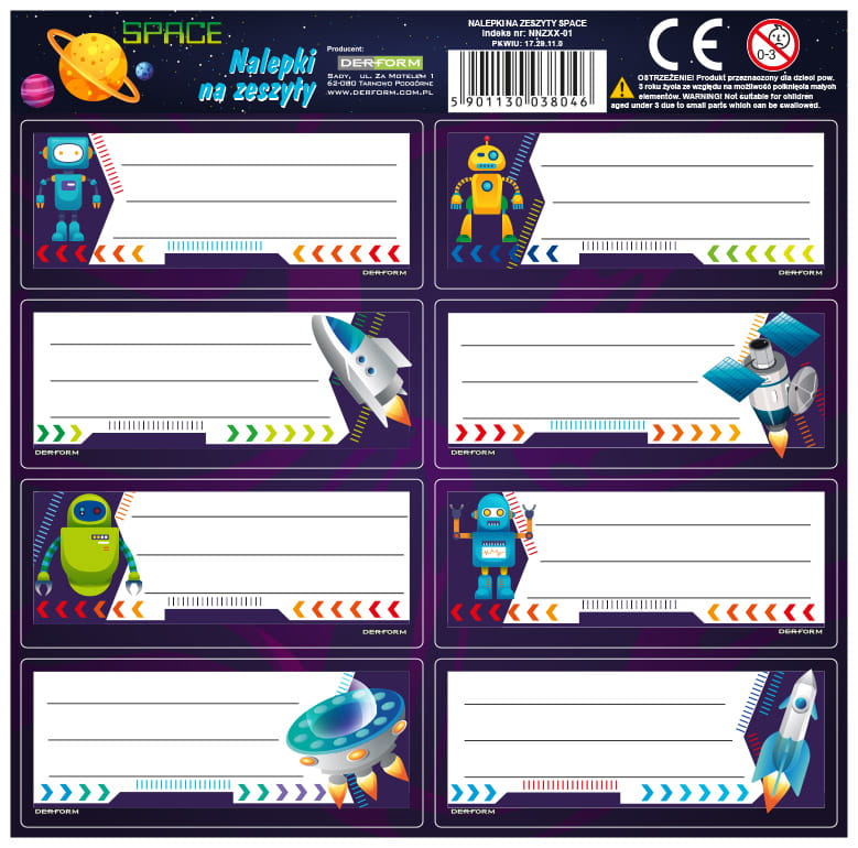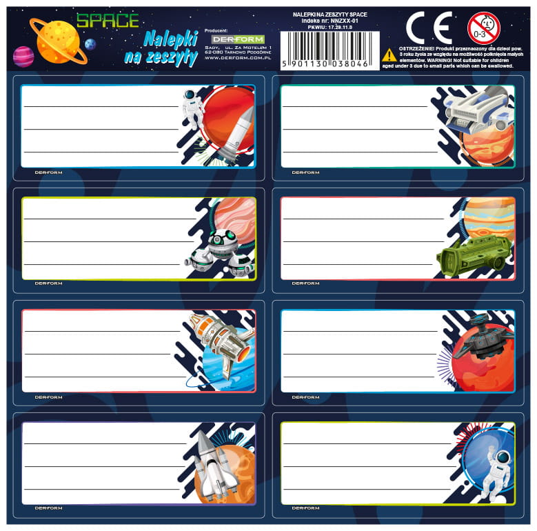 Naklejki , nalepki na zeszyty space kosmos