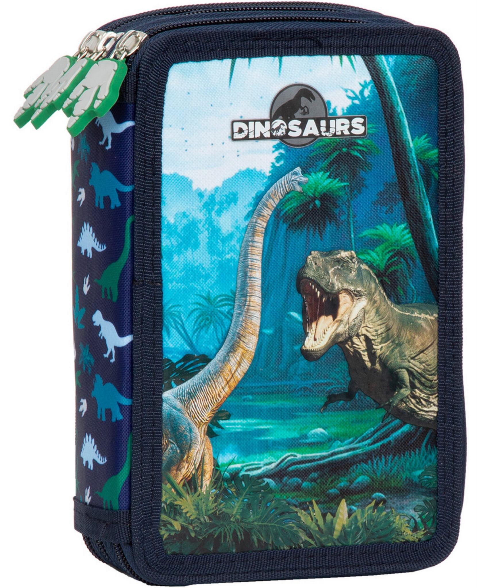 Piórnik potrójny z wyposażeniem BackUp Dinozaury