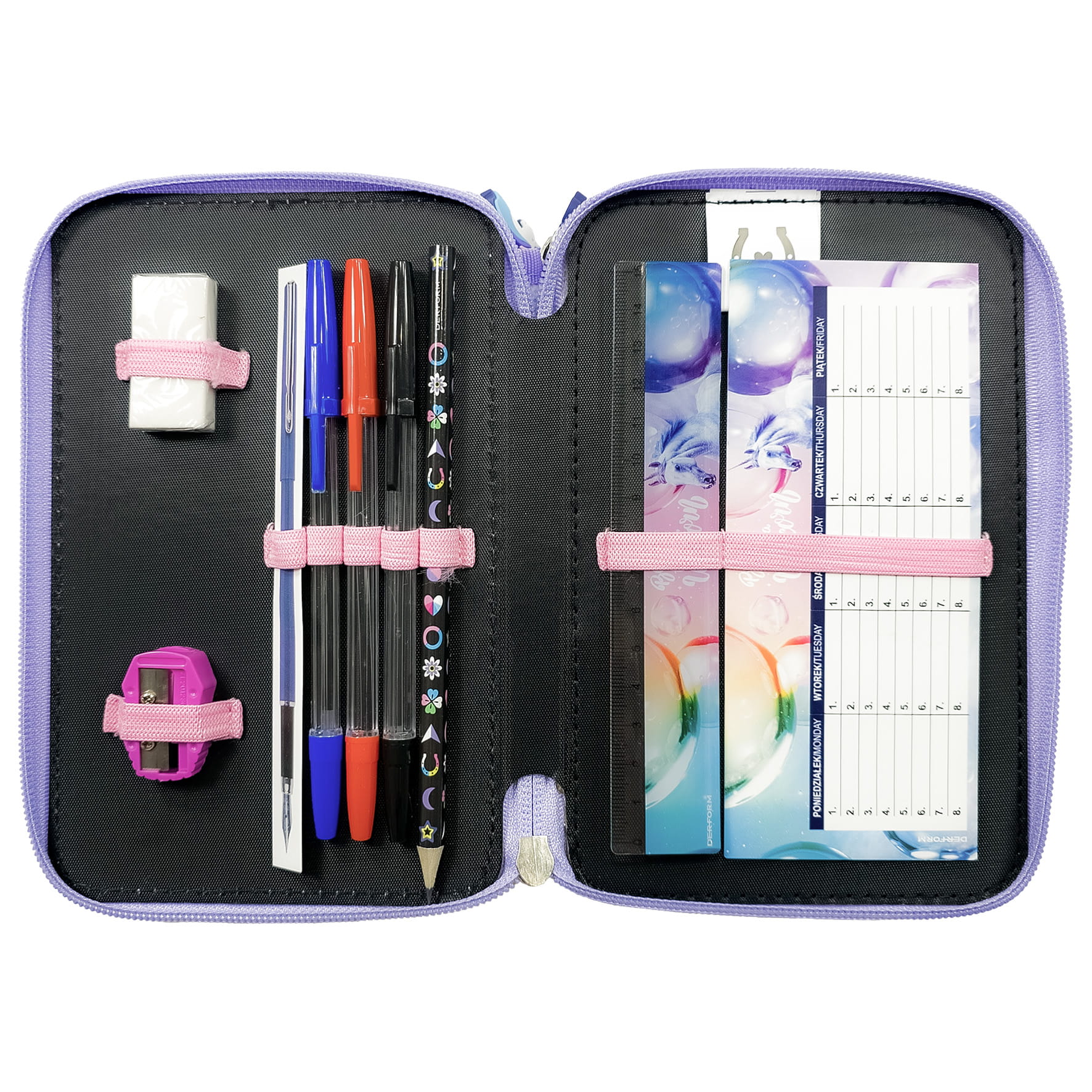 Piórnik potrójny z wyposażeniem BackUp Jednorożec