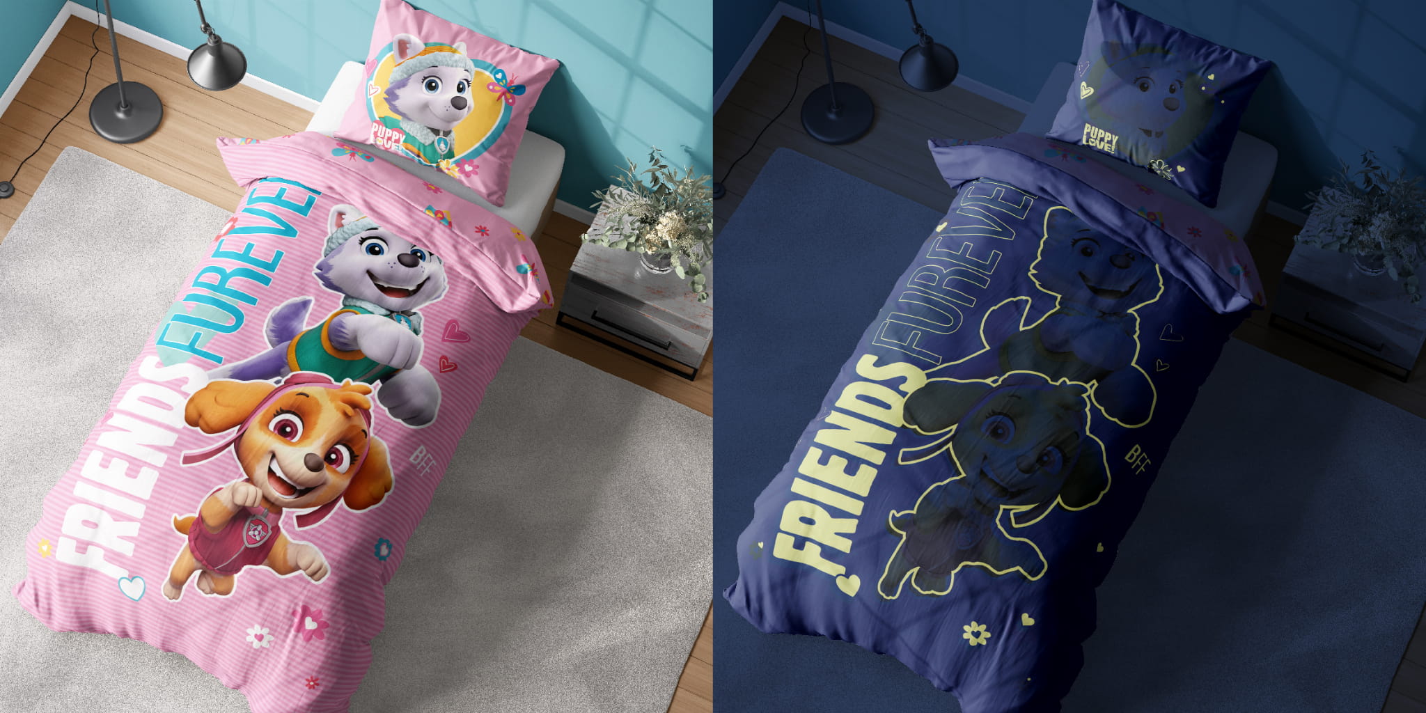 Wykonana z najwyższej jakości bawełny pościel z wyjątkowym, świecącym w ciemności dwustronnym nadrukiem z bohaterami bajki Psi Patrol . Delikatna, jedwabista i miła w dotyku. Wyposażona w wysokiej jakości zamek błyskawiczny osłonięty materiałem, tak aby nie był odczuwalny. Żywe kolory (które nie blakną nawet po wielu praniach) i ciekawy wzór przykuwają uwagę i dodają uroku sypialni.