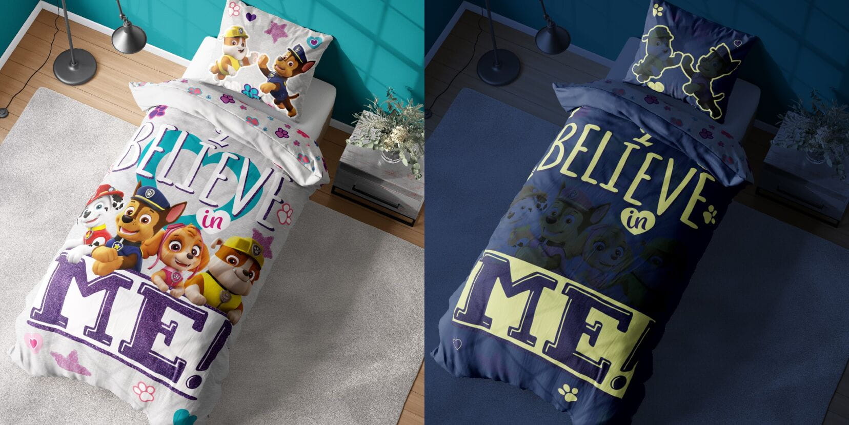 Wykonana z najwyższej jakości bawełny pościel z wyjątkowym, świecącym w ciemności dwustronnym nadrukiem z bohaterami bajki Psi Patrol . Delikatna, jedwabista i miła w dotyku. Wyposażona w wysokiej jakości zamek błyskawiczny osłonięty materiałem, tak aby nie był odczuwalny. Żywe kolory (które nie blakną nawet po wielu praniach) i ciekawy wzór przykuwają uwagę i dodają uroku sypialni.