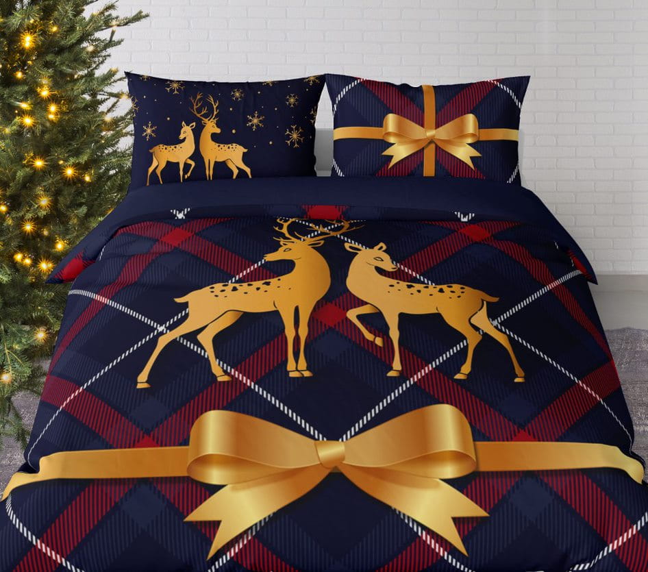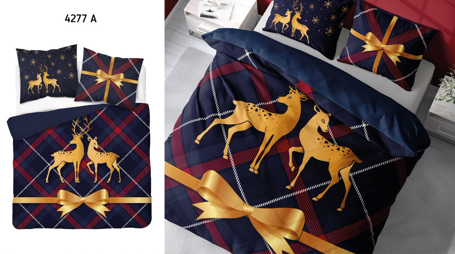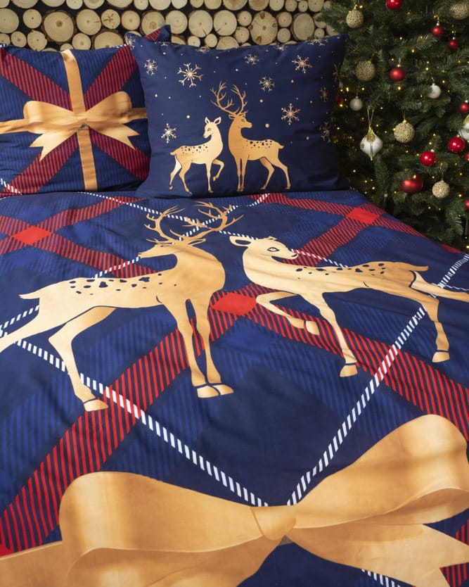 Pościel 160x200 bawełniana Holenderska Renifer Renifery pościel świąteczna