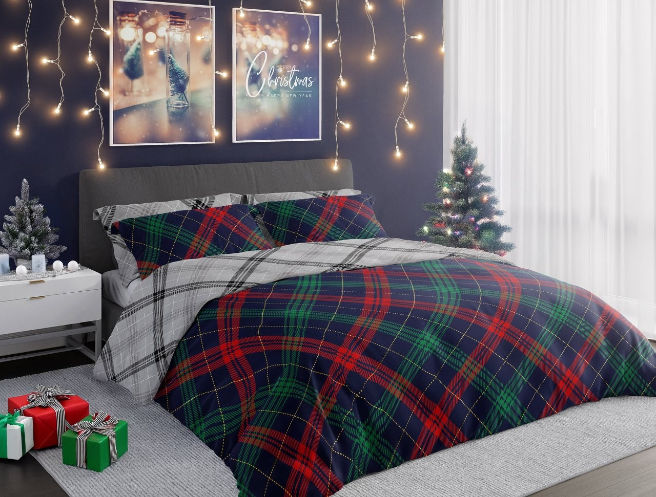 Komplet pościeli wykonany z najwyższej jakości bawełny z wyjątkowym, świątecznym nadrukiem. Wykorzystana do uszycia tego eleganckiego kompletu bawełna jest jedwabista, delikatna i bardzo miła w dotyku - komfort snu gwarantowany. Każda z poszewek posiada zamek błyskawiczny osłonięty materiałem, tak aby nie był odczuwalny. Żywe kolory które utrzymują się nawet po wielu praniach i atrakcyjny świąteczny wzór przykuwają uwagę i dodają niesamowitego uroku sypialni.