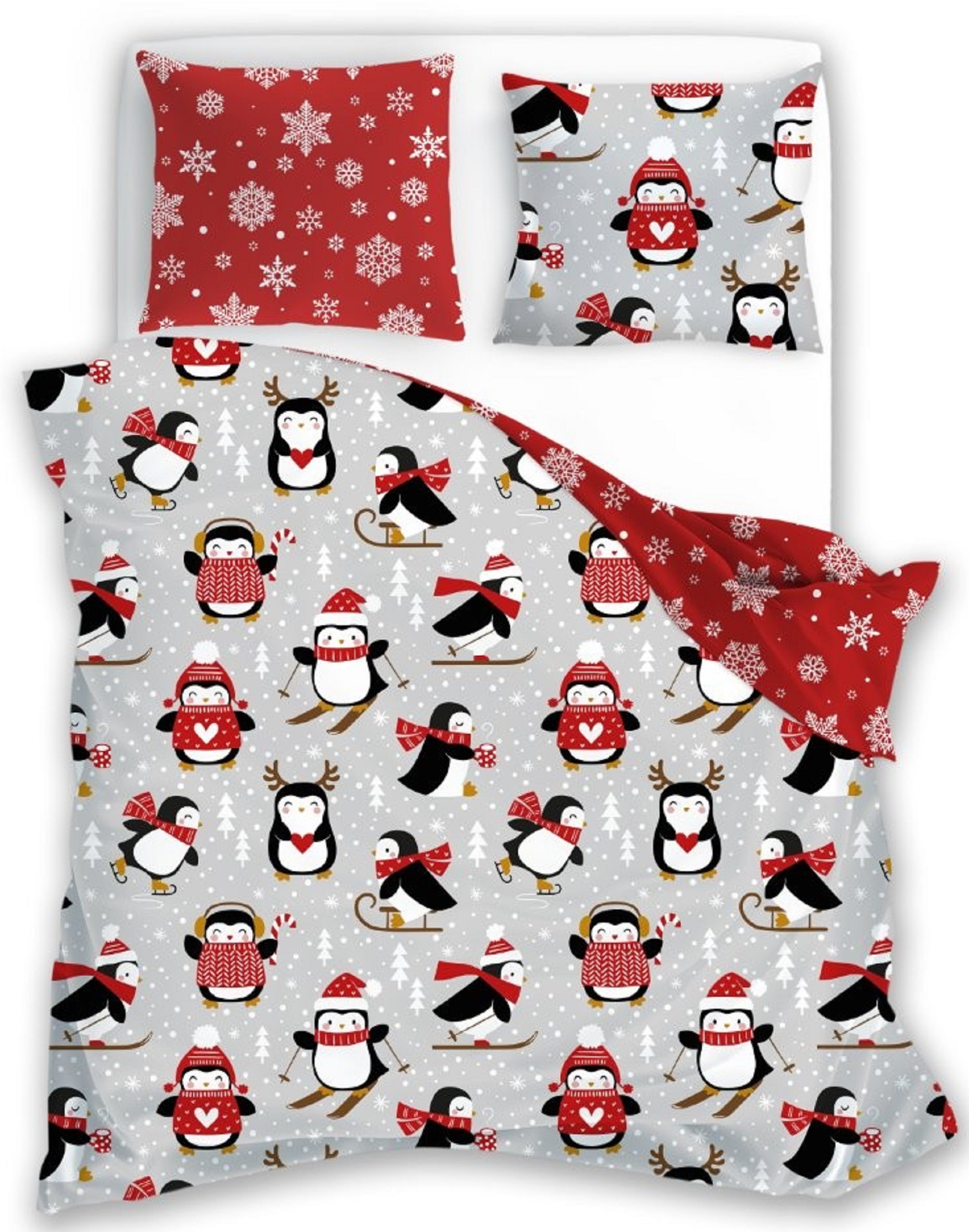Komplet pościeli wykonany z najwyższej jakości bawełny z wyjątkowym, świątecznym nadrukiem. Wykorzystana do uszycia tego eleganckiego kompletu bawełna jest jedwabista, delikatna i bardzo miła w dotyku - komfort snu gwarantowany. Każda z poszewek posiada zamek błyskawiczny osłonięty materiałem, tak aby nie był odczuwalny. Żywe kolory które utrzymują się nawet po wielu praniach i atrakcyjny świąteczny wzór przykuwają uwagę i dodają niesamowitego uroku sypialni.