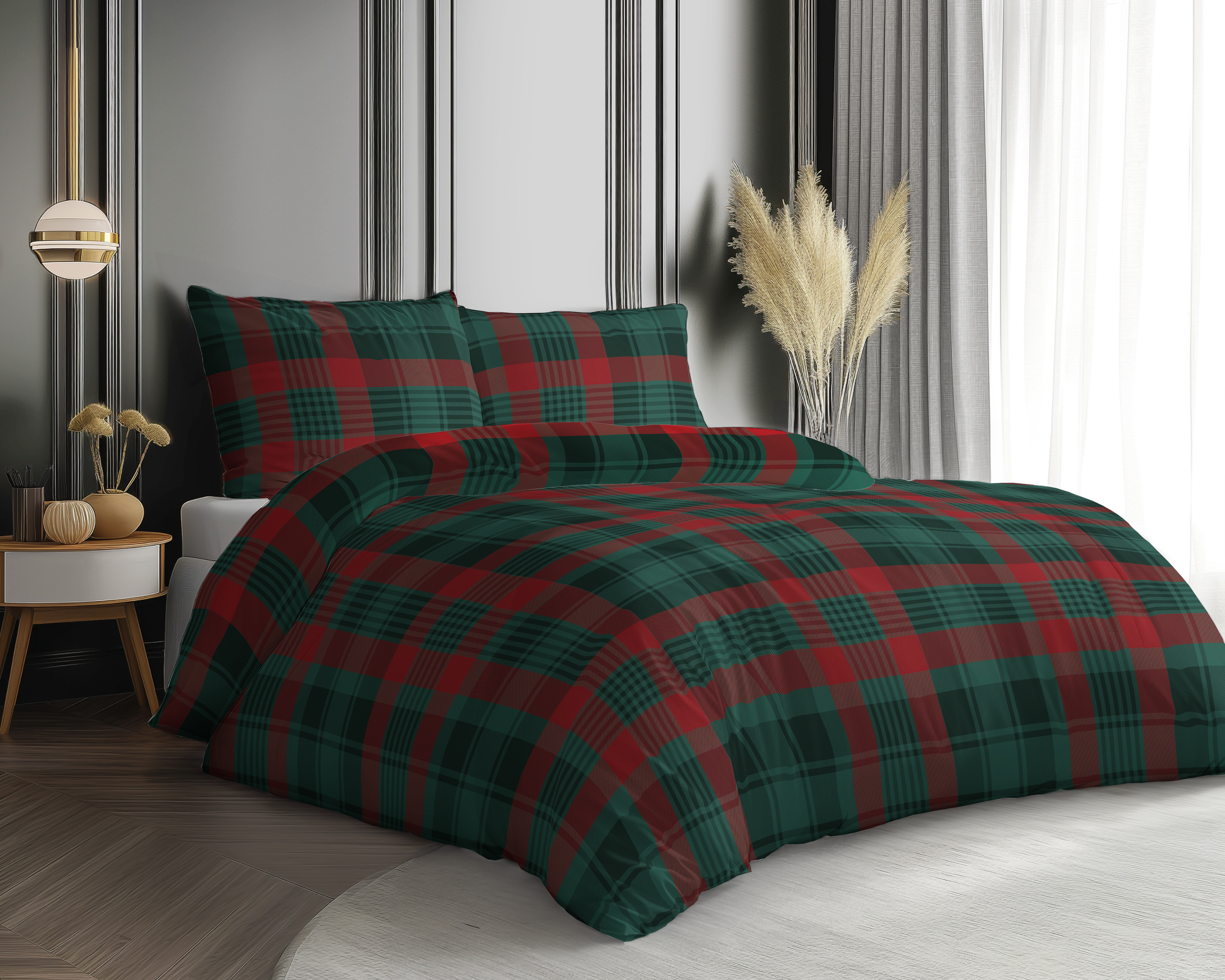 Pościel 220x200 satyna bawełniana komplet do sypialni krata