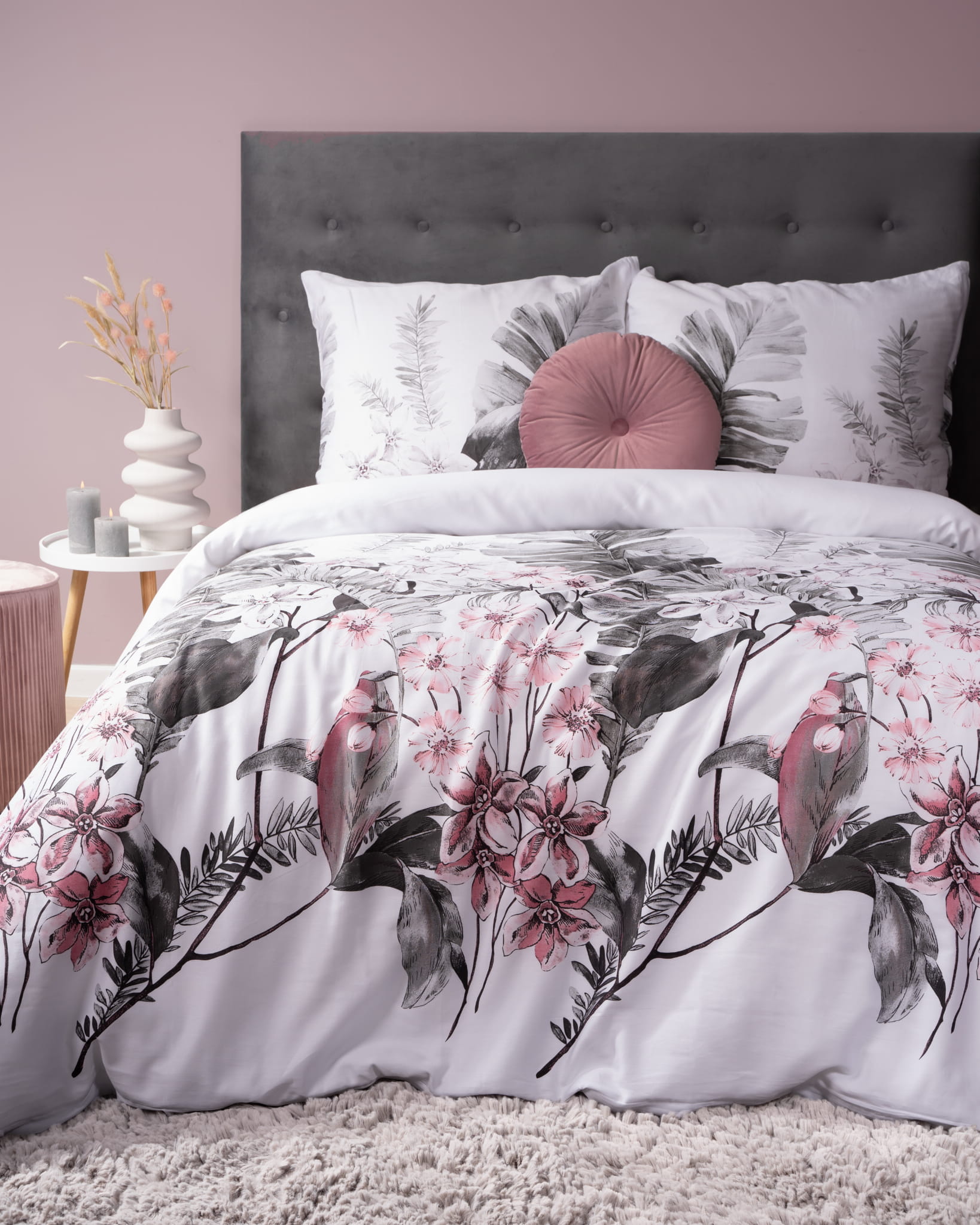Komplet pościeli wykonany z najwyższej jakości bawełny satynowej. Wykorzystana do uszycia bawełna jest jedwabista, delikatna i bardzo miła w dotyku - komfort snu gwarantowany. Każda z poszewek posiada zamek błyskawiczny osłonięty materiałem, tak aby nie był odczuwalny. Żywe kolory, które utrzymują się nawet po wielu praniach i atrakcyjny wzór przykuwają uwagę i dodają niesamowitego uroku sypialni.