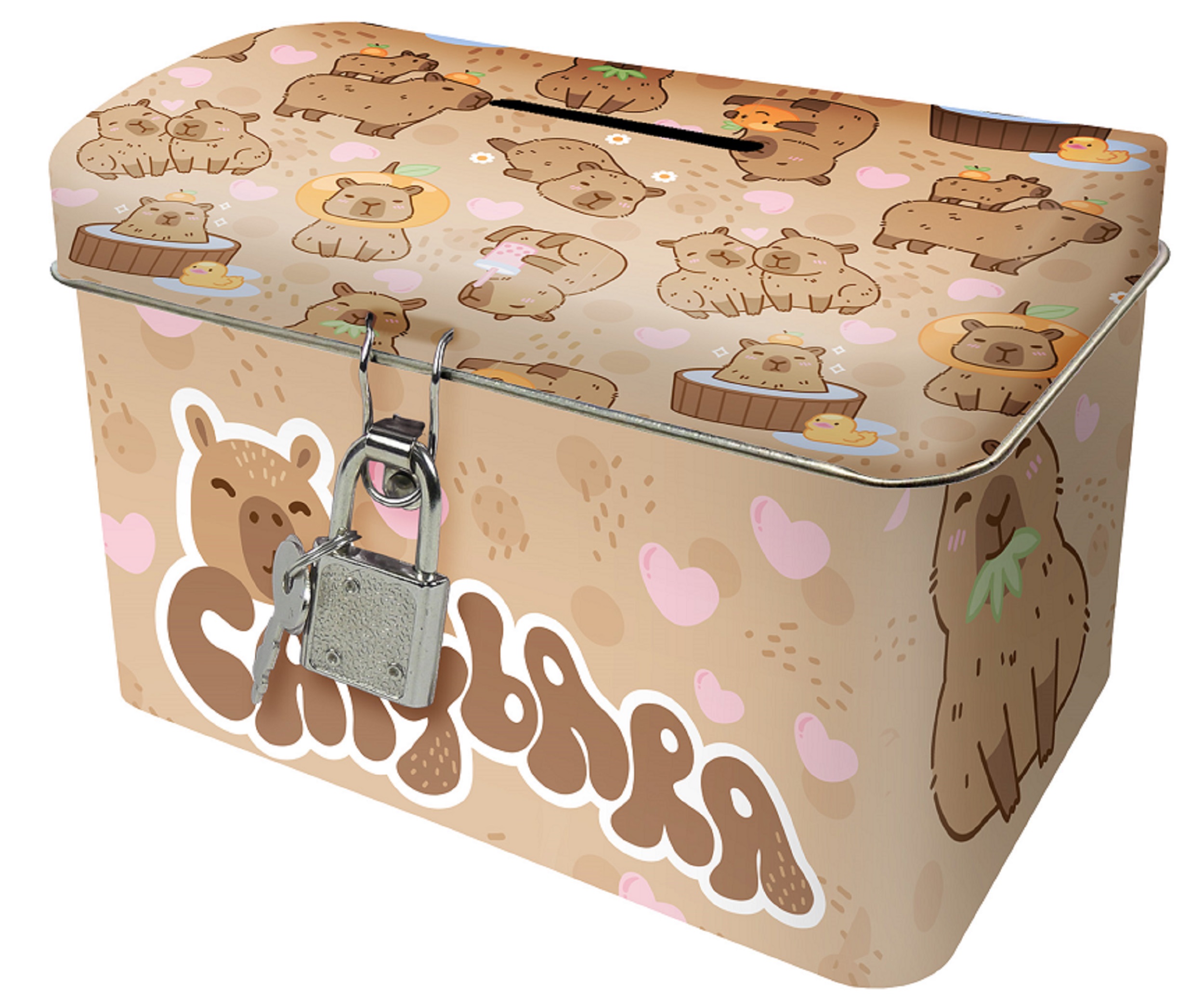 Skarbonka metalowa dla dziecka z kłódką zamykana Capibara na oszczędności